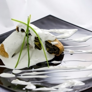 Boil 2-3 shallots in 100 milliliters of white wine until the liquid evaporates almost completely, then chop the cooled shallots and add them to the mayonnaise.
