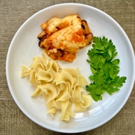 Remove the mussels from the oven and let cool. Serve with pasta, garnished with a sprig of herbs.