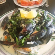 Strain the broth through a fine sieve, return it to the heat, and whisk in the cream. Sprinkle the resulting sauce-soup with chopped parsley and pour it over the mussels when serving.