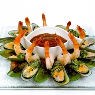 Place the mussels in the pesto on the shells and then onto a plate and serve.