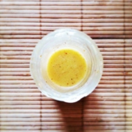 Layer all the ingredients one by one into a small jar (or a bottle with a wide mouth if you're cooking for a larger family) with a tightly sealed lid, close it, and shake vigorously until you achieve a beautiful, smooth consistency with visible mustard seeds.