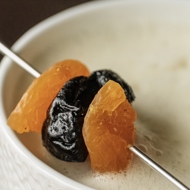 Strain the drink into a glass or mug. Optionally, garnish with dried apricots or prunes.