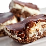 Pour the chocolate as the third layer into the pan and refrigerate, but only until the chocolate starts to harden.