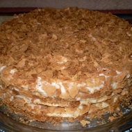 The cream is simply delicious. It would make a fantastic honey cake. It tastes like slightly melted ice cream. The cake turns out quite tall. But after a night in the refrigerator, it will settle.