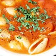 Season the soup with butter and cream, add the pasta, cooked in water and cut into pieces 0.5 cm long. Serve separately thin croutons sprinkled with cheese and browned in the oven.