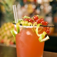 Pour into a glass and garnish with a sprig of red currants.