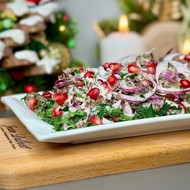 The New Year's Delight Salad will be a bright highlight of your New Year's menu. Tender beef, sweet and sour pomegranate seeds, and aromatic pickled onions combined with fresh herbs will create an unforgettable taste that all your guests will appreciate. Enjoy your meal and Happy New Year!