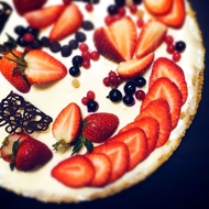 Before serving, run a knife along the edges of the pan to loosen the cheesecake, remove the rim, and transfer the cheesecake to a serving plate. Decorate as desired.