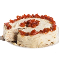 You can trim the edges of the cake layers or leave them as they are if they are uniform. Spread a generous layer of sour cream frosting on each layer. Use the remaining frosting to cover the sides of the cake. You can decorate the cake with crumbs from the trimmed cake layers or your favorite jam.