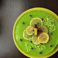 Before serving, don't forget to remove the cake from the mold. Now it's time to decorate the lime jelly cake; you can create swirls with thinly sliced rounds of lime and add mint leaves.