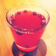 Serve in thick glass cups with fresh cranberries for garnish.