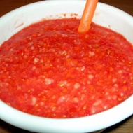 Pass the tomatoes, pepper, carrot, garlic, and chili pepper through a meat grinder.