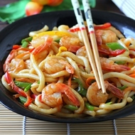 Transfer the pasta to a deep dish. Add the avocado sauce to the warm pasta. If it is too thick, add 2 tablespoons of noodle broth at a time until the desired consistency is achieved.