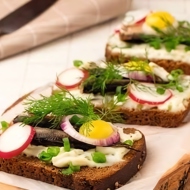 Smørbrød is a classic Norwegian fish sandwich served on dark bread. Norwegians cannot imagine breakfast or brunch without this appetizer. There are over a thousand varieties of such sandwiches. In restaurants, they are served as a vibrant and tasty compliment from the chef. The recipe provided describes a classic preparation method. This is the first smørbrød that became known outside of Norway.