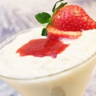 Spoon the resulting cream into dessert cups, garnish with strawberry sauce, strawberries, or a sprig of mint.