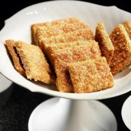 Before placing the baking sheet in the preheated oven at 392°F, brush the dough with egg white and sprinkle with the remaining brown sugar. Use a round pizza cutter to cut the sheet of dough into squares and bake for 15 minutes.