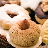 Beat the egg and egg white with an electric mixer until light and thick. Gradually add the remaining sugar and beat until the mixture is even lighter and fluffier (about 5 minutes). Add the cinnamon and lemon zest, and mix with the nut crumbs. Cover the resulting dense mixture with plastic wrap and leave it in the refrigerator overnight.