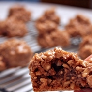Line a baking sheet with parchment paper and drop spoonfuls of the mixture onto it in the shape you want for the cookies. Bake for 25–30 minutes.