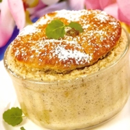 Grease the molds with butter, fill them with the soufflé mixture, and place in a preheated oven at 392°F for 10 minutes. The soufflé will rise high but will fall as it cools. Optionally, dust with powdered sugar.