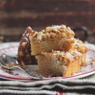 Carefully spread the batter over the base, then add the walnuts. Bake the pie for 30–40 minutes until a toothpick comes out clean. Let cool, remove from the dish, and serve drizzled with honey or maple syrup.