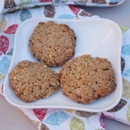 Mix the mixture with the oatmeal flour. Add baking powder. To taste: cinnamon, nuts, raisins, chocolate chips, dried berries, coconut, sesame...