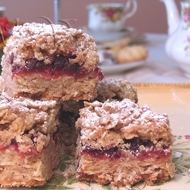 Spread a layer of jam and sprinkle with the remaining crumbs (do not press).
