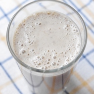 Place the oats, banana, almond pulp, honey, and warm almond milk in a blender and blend until smooth.