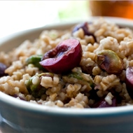 Serve the oatmeal with the dark berry-pistachio sauce.