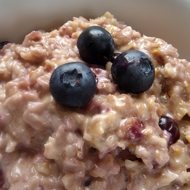 Remove the oatmeal from heat and stir in the blueberries and orange zest. Cover the saucepan with a lid and let it sit for 5 minutes — during this time, the blueberries will release their juice.