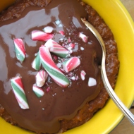 Remove from heat and divide into plates. Serve topped with a couple of spoonfuls of chocolate pudding and crumbled mint caramel.