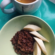 Oatmeal with Cocoa, Banana, and Raspberry Jam