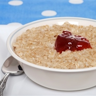 Before serving, add the butter to the oatmeal, stir well, and drizzle with jam on top.