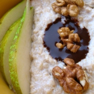 Oatmeal with Pear, Walnuts, and Spicy Chocolate Sauce