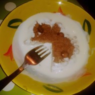 Whip the egg white, then add the milk, honey, and cinnamon if desired.