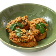 Mix the cooked vegetables with the beans, add cilantro, and pass them through a meat grinder.