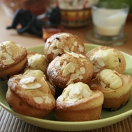 Pour into molds, sprinkle with chocolate chips and almond flakes.
