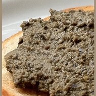 Tapenade is made exclusively from olives. Green olive tapenade is a heresy! You can vary the proportions of the ingredients to your taste. Tapenade freezes very well and can be stored in the refrigerator for several days. Serving suggestion: serve tapenade as an appetizer or at a picnic, placing it in a bowl so everyone can spread it on toast.