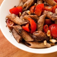 Add the pasta back to the pot, mix with tomatoes and nuts, and serve.