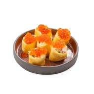 Before serving, arrange the rolls beautifully on a plate and garnish with caviar.