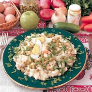 To ensure there is enough salad for everyone, use potatoes as the base. Take as many potatoes as there are eaters. Adjust the other ingredients in the proportions given in the recipe.