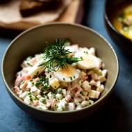 Olivier Salad with Salmon and Cream