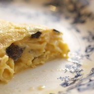 Add thin slices of truffle and mix with the eggs. If you want to achieve a strong truffle flavor and aroma, let the mixture steep for a bit – 5 minutes should be enough.