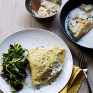 In another saucepan, melt 15 g of butter, add the flour, and sauté for 1 minute. Pour in the milk that the haddock was cooked in, whisking well to ensure there are no lumps in the sauce. Add the pieces of fish to the sauce and keep it in a warm place.