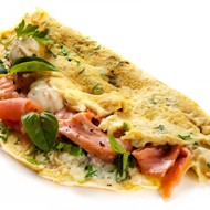 Divide the omelet into 4 portions, place on plates, and optionally garnish with sprigs of dill.