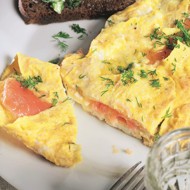 Before serving, sprinkle the omelet with chopped dill. Serve with a cup of coffee.