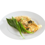 Fold the omelette in half and serve, garnished with wild garlic.