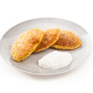 Place the cooked onion cakes on paper towels to absorb excess grease. Serve with sour cream.