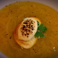 Ladle the finished soup into bowls and send the toasts with meringues sailing in. Serve immediately while the 'boats' haven't sunk.