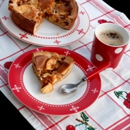 Open apple pie with gorgonzola and nuts