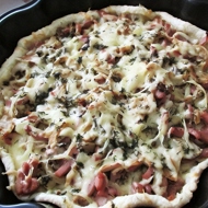 Open Pie with Puff Pastry, Ham, and Mushrooms